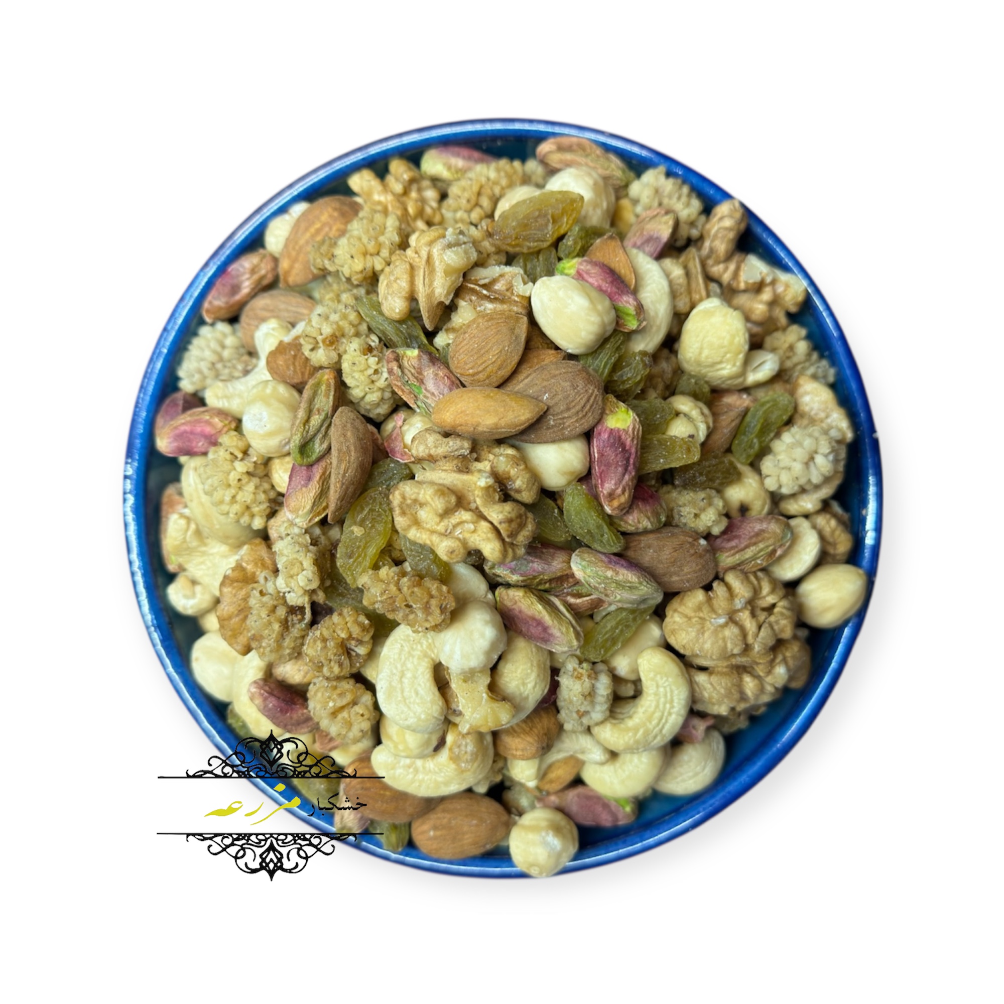 ترکیبات: مغز پسته/مغز فندق/توت خشک/مغز بادام/مغز گردو/کشمش سبز
